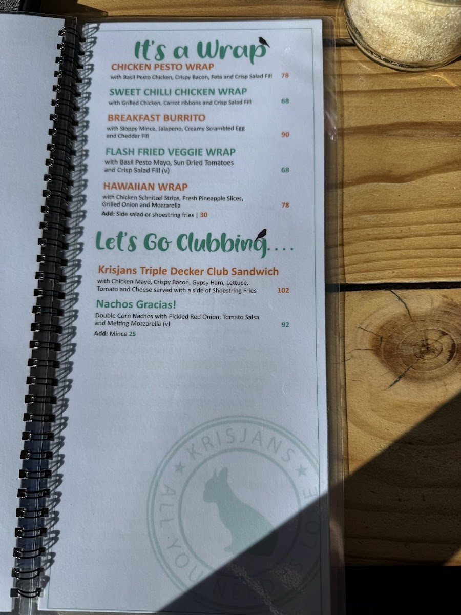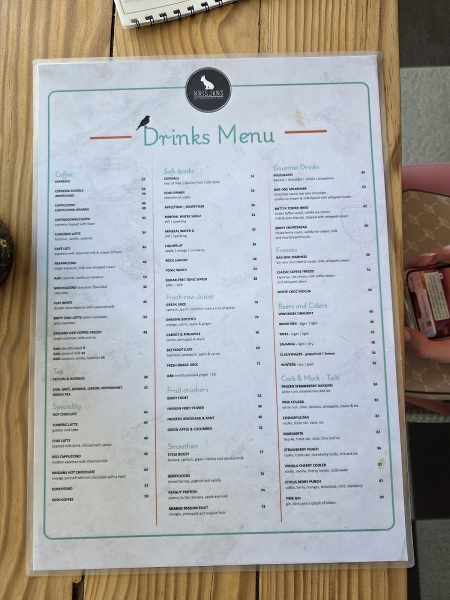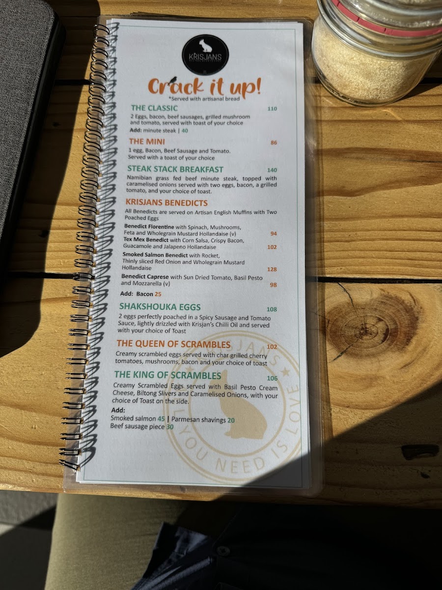 Krisjan's Bistro Windhoek Menu